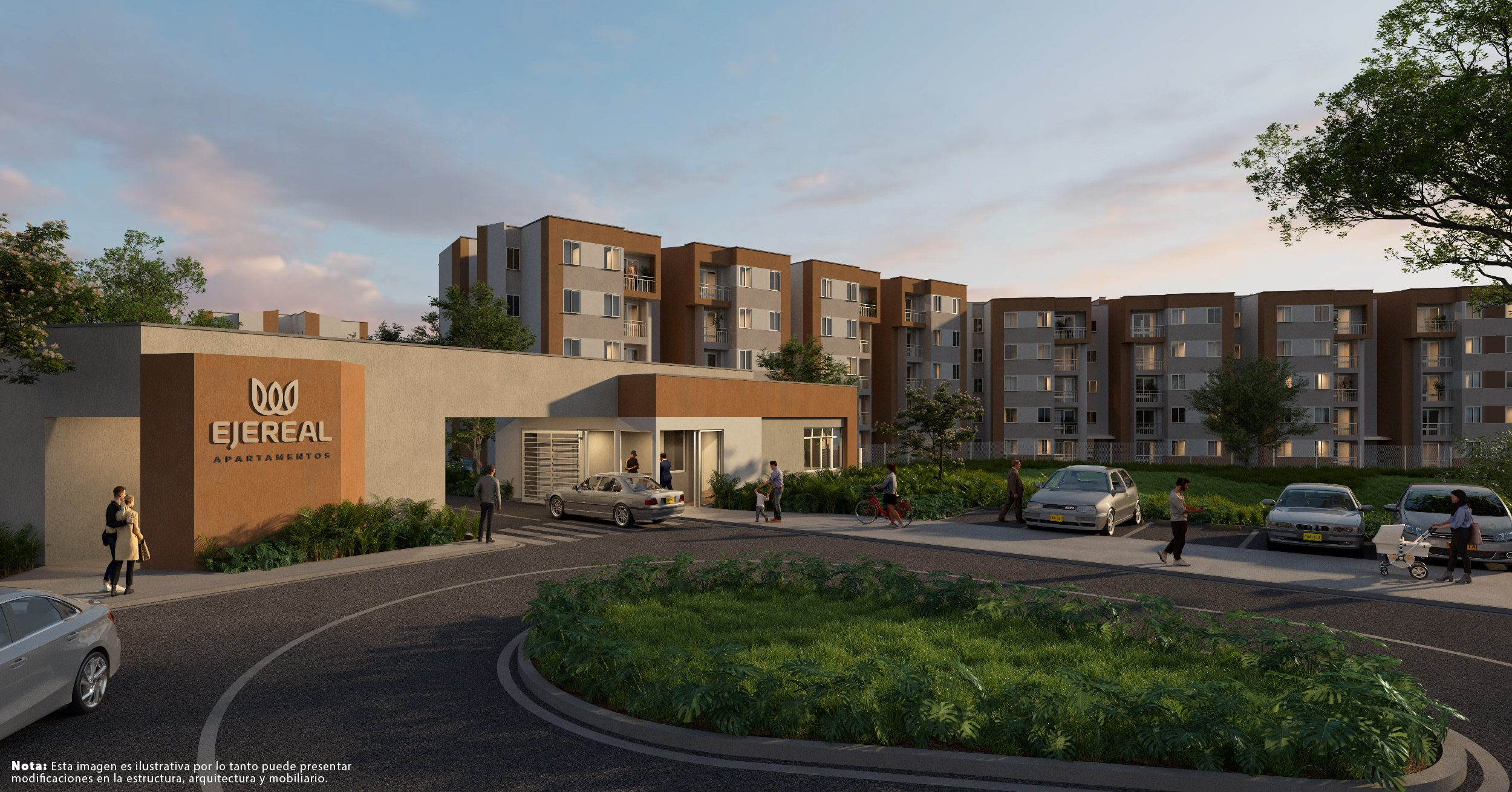 Cerca a la entrada de Tebaida – Armenia encontrarás a Ejereal, condominio de apartamentos en conjunto cerrado con torres de 5 pisos, rodeado de grandes zonas verdes, juegos infantiles y área BBQ donde podrás disfrutar momentos únicos en familia y compartir con tus amigos.