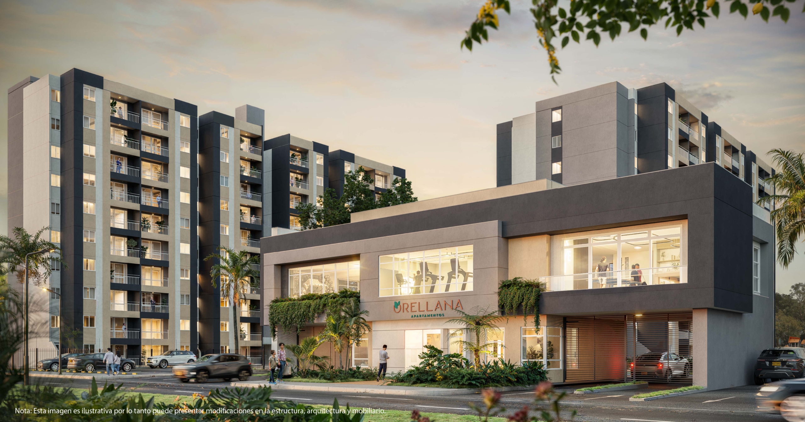 Este proyecto en conjunto cerrado, rodeado de amplias zonas verdes, está ubicado estratégicamente al sur de Cali. Orellana está conformado por 4 torres de 10 pisos, cada una con ascensor. Cuenta con un parqueadero propio 1 a 1 y sus completas zonas comunes incluyen salón social, gimnasio, sala de entretenimiento y coworking dotado, zona de juegos infantiles, piscina para adultos y piscina para niños. Un lugar pensado para brindar bienestar, accesibilidad y calidad de vida.