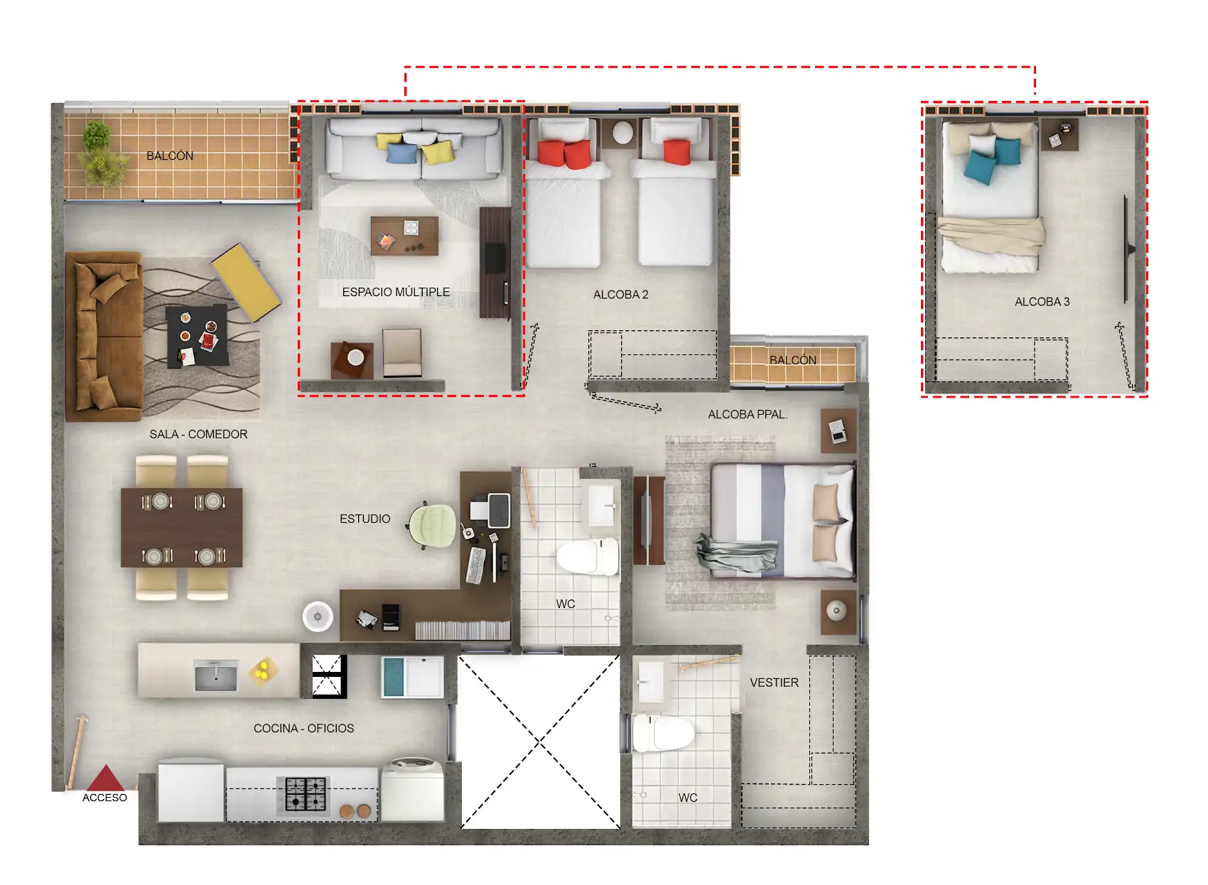 Área construida: 66.90m2 - Área Privada: 60.98m2